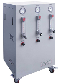 QHZ-5型气体混合装置采用气体的流体原理,二种或三种不同气体在同等压力下,通过控制流量比达到不同比例的混合气体。如将N2、O2、CO2按不同比例配制成气调保鲜气体,通过包装机对包装盒或包装袋内的空气进行置换,以达到抑制细菌(微生物)的生长繁衍,减缓新鲜果蔬的新陈代谢速度,从而延长食品的保鲜期及保质期。